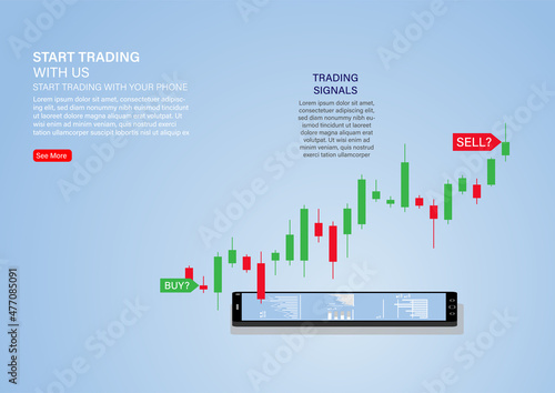 Businessman buying or selling shares, investing in stock market from mobile phone, flat vector isometric illustration. Mobile stock trading concept.