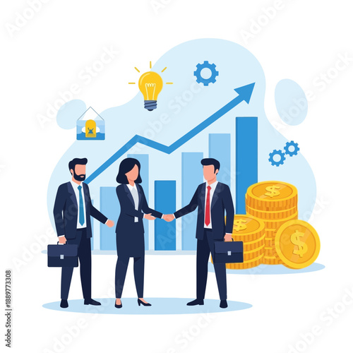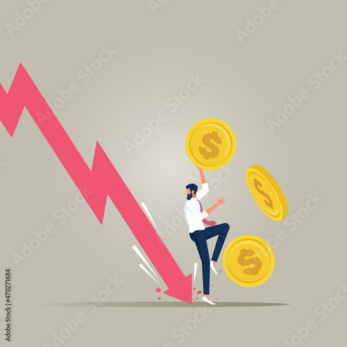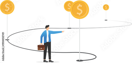 Vector illustration of businessman juggling gold coins with reserve currency symbols dollar euro pound etc. Business and finance concept design element.