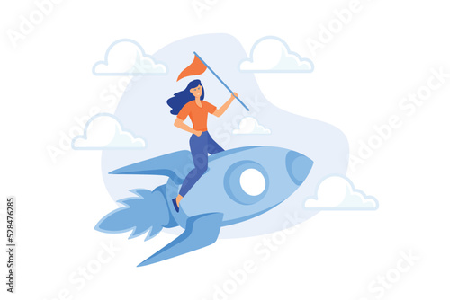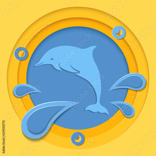 Young businessman with briefcase staying afloat and surfing the waves of change. Vector illustration in paper art style. Challenge business concept.