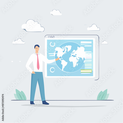 Businessman taking his business to the next level, flat vector illustration. Business growth strategy, next level to success. Partnership agreement, creation of new ideas, teamwork.
