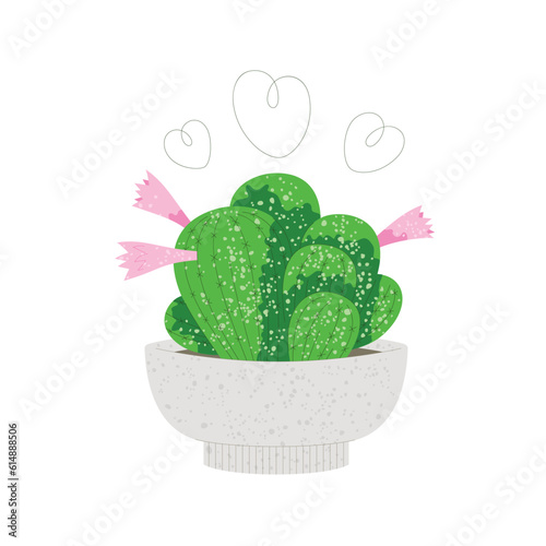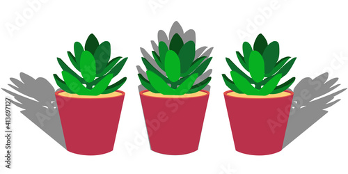Realistic cactus and succulent plants in white pots, vector illustration isolated on white background. Beautiful cacti and succulent potted houseplants.