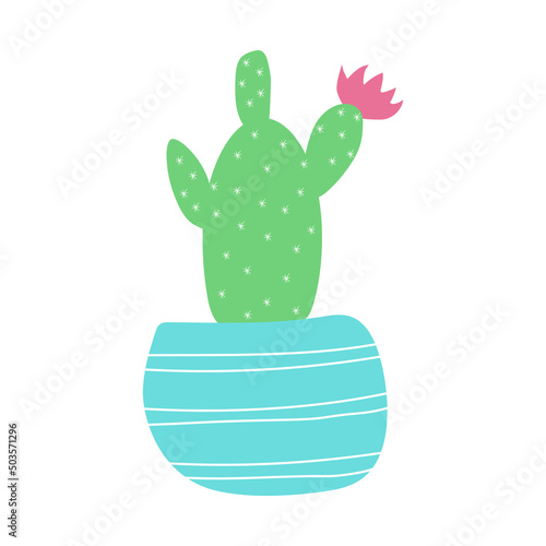 Cactus flower vector illustration. Cartoon plant. Cacti pot in icon. Succulent with thorn and blooming bud in flowerpot isolated on white background