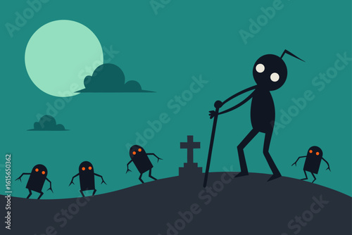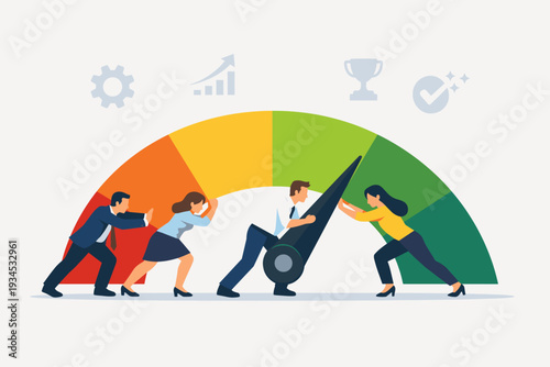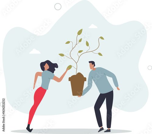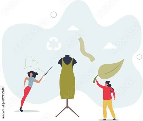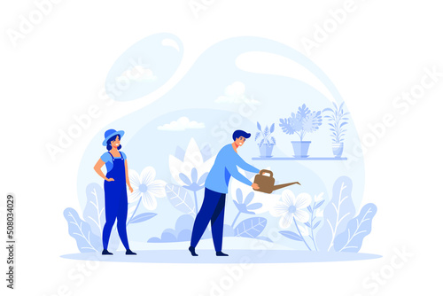 Cafe concept vector flat style design illustration. Big serving platter with dome lid and tiny characters visitors and waitress. Restaurant, catering business.
