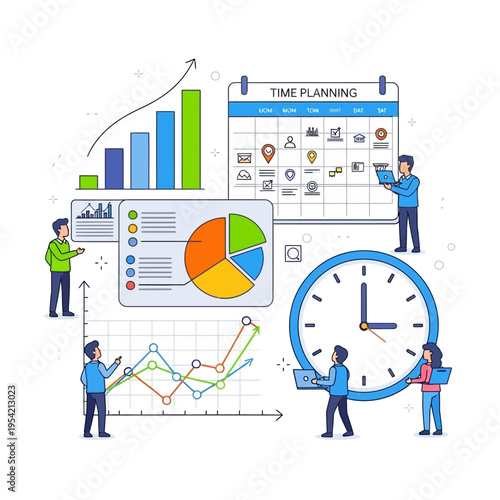 Calendar with tax deadline check mark, tiny characters filing tax form, making payments, flat vector illustration. Tax day reminder, taxation concept.