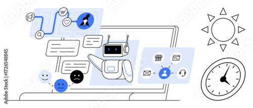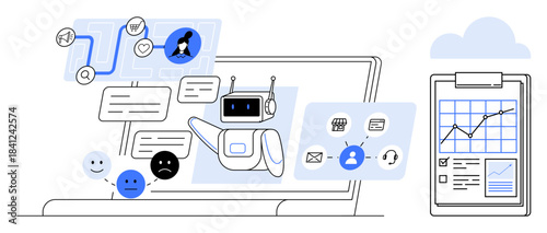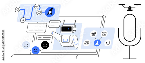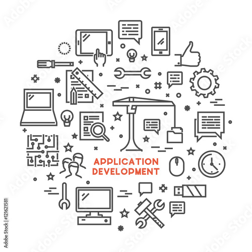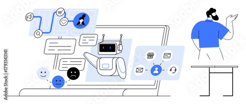 Call center concept vector illustration in the shape of speech bubble. Modern thin line art flat style design element for printed materials.