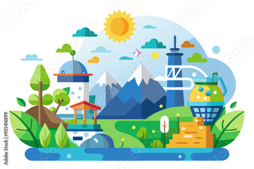 Camping isometric concept. Vector illustration in flat 3d style. Outdoor camp activity. Travel in mountains.