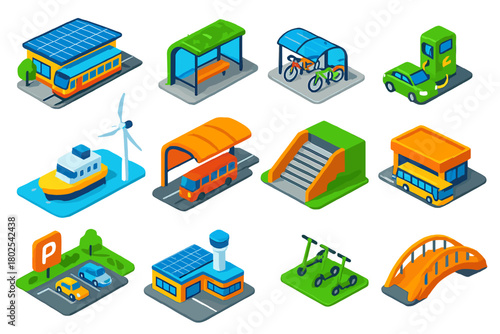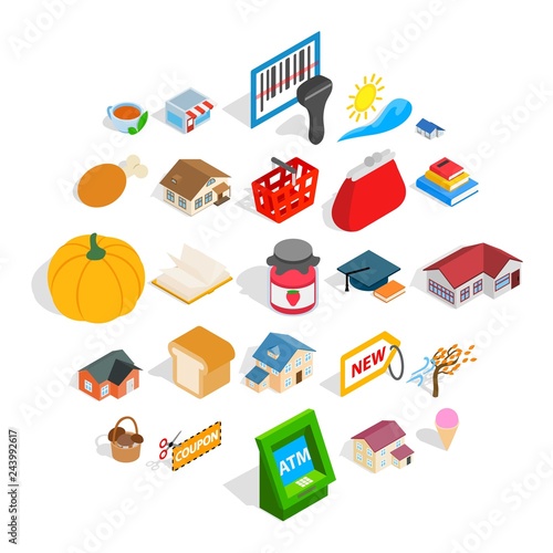 Camping objects in vector isometric style. Flat 3d isometric design. Family vacation, hiking, picnic, car travel. Camp place in forest. Isolated icons and template design.