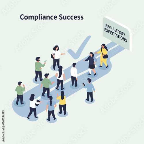 Huge cancel red warning sign and vector people group holding banner or placard. Human crowd on public protest, social strike manifestation event isometric illustration