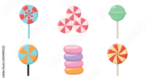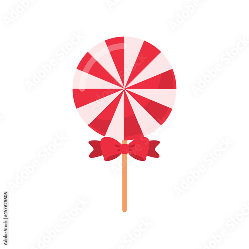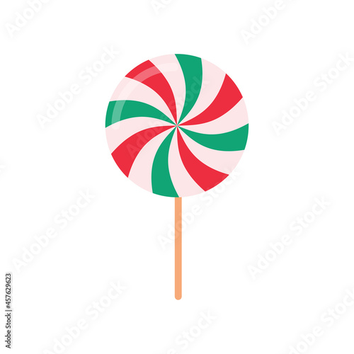 Candy vector. Christmas peppermint lollipop icon. Isolated round swirl spiral sweet caramel on stick standing in sugar icing. Homemade confectionery on white background