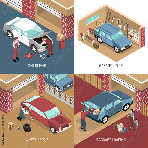 Car accident vector. Road traffic crash, automobile collision, theft, hitting pedestrian, flood, explosion, tree fall isolated isometric 3d set