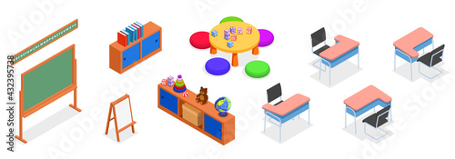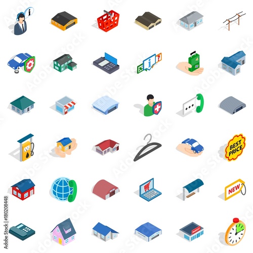 Car accident isometric vector set of icons. Injured people character, insurance agent, paramedics providing first aid and evacuator transportation, police, ambulance, crashed vehicle