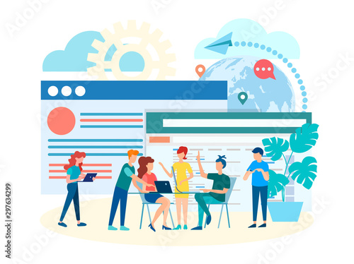Auto sale auction, vector illustration. Isometric red car on podium, auctioneer with gavel and people with bid paddles. Auction and bidding composition for web banner, website page etc.