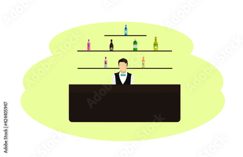 Vector illustration of young male parking assistance or parking attendant standing inside of guard booth. Car guard concept design element in flat style.