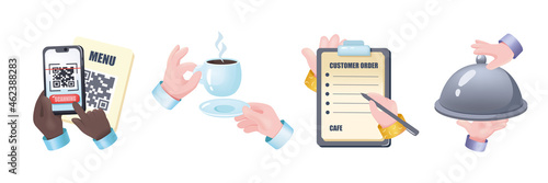 Car insurance online, vector illustration. Smartphone with auto insurance policy, shield, car damaged by fallen tree, finger tapping buy button. Isometric composition for poster, banner, website page.