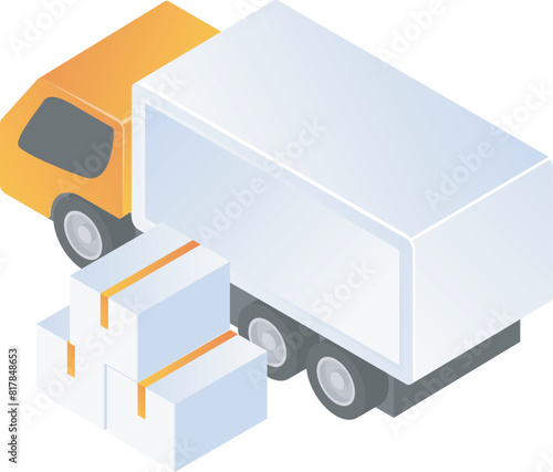 Car road accident and truck assistance emergency service vector icon. Isometric tow truck evacuator lifting crashed auto with crane illustration isolated on white background