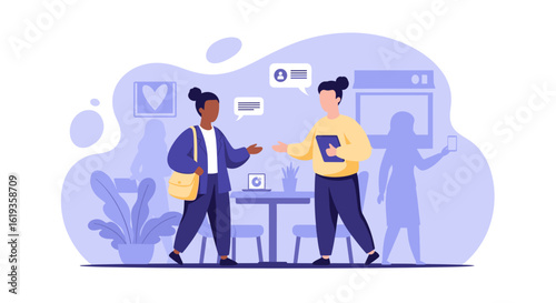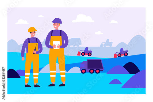 Car showroom with new car and two male characters auto dealer and buyer, flat vector illustration. Salesman giving keys to happy man automobile owner. Sale, buy or car rental, auto dealers services.