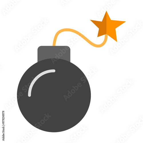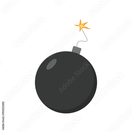 Cartoon black cannon bomb ball with burning explosive wick vector icon illustration isolated on white background