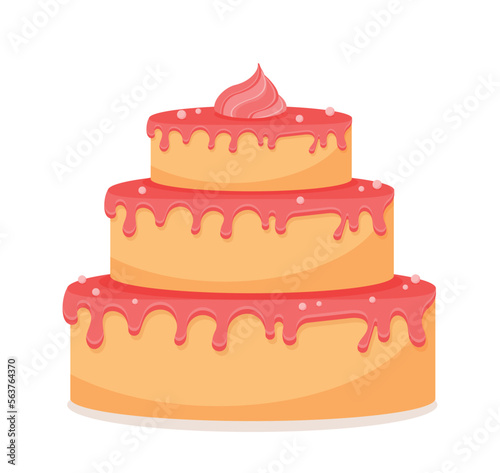 Cartoon cake vector. Birthday party celebration icon. Flat dessert food for baby shower isolated on white background