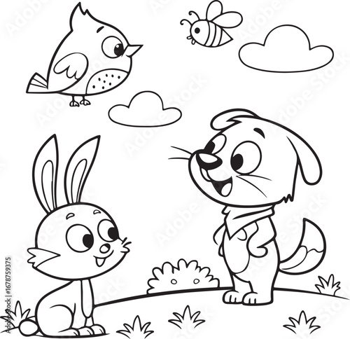 Cartoon dog with bone in mouth vector. Funny puppy animal eating food icon. Happy cute pet isolated. Pet chewing toy, biting snack illustration on white background