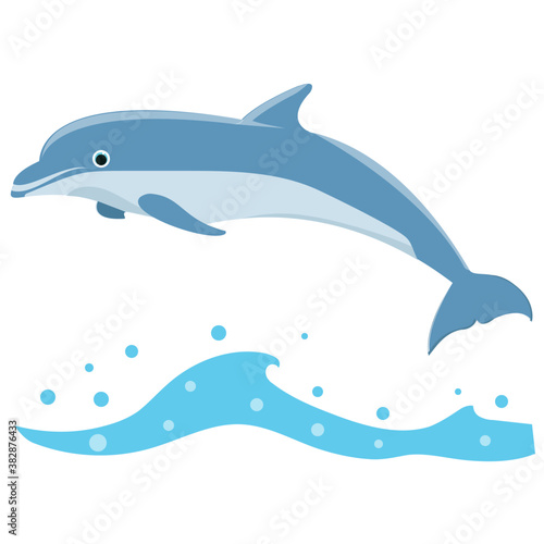 Cartoon dolphin vector. Cute fish character icon. Sea water animal illustration. Funny underwater creature swim isolated on white background
