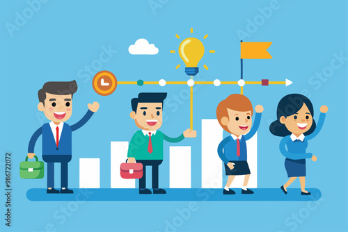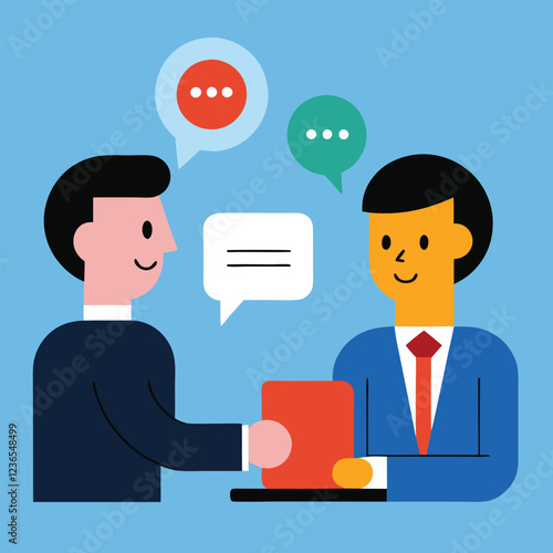 Cartoon office worker loves his work outstanding from crowd. Going to work vector concept illustration in flat style design. Man characters, clouds, message bubble, heart, going to work.