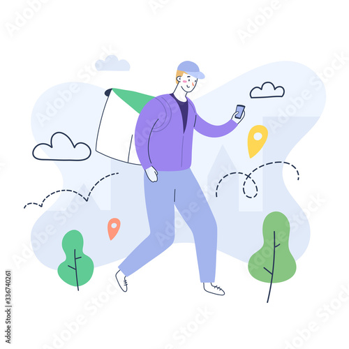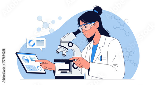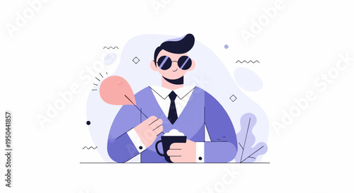 Cartoon scientist with a flask. Vector illustration. Science for kids.