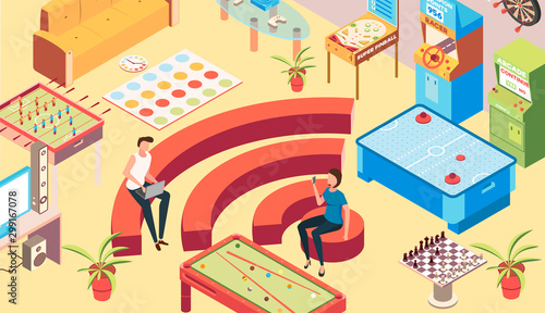Casino legalization vector concept illustration. Isometric legal symbols Law book with gambling chips, dices, playing cards, scales of justice, judge gavel, gaming license.