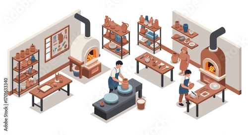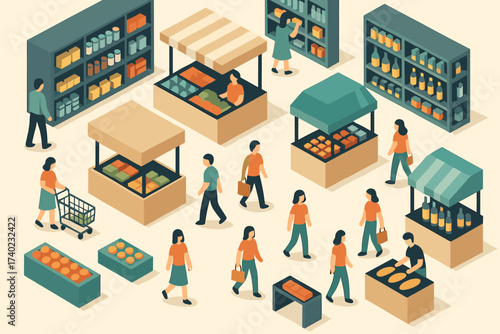 Casino online slots concept. Vector isometric illustration of gamblers playing online slot game on desktop computer and laptop.