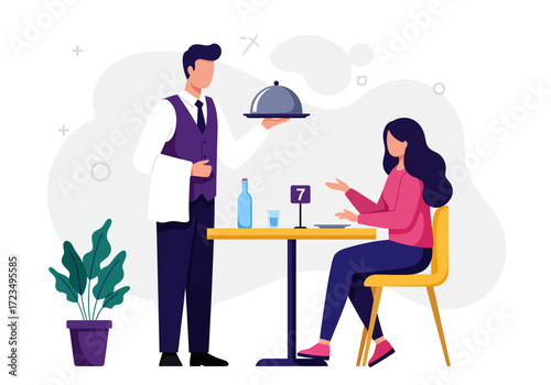 Micro female characters feeding, combing and stroking huge beautiful cat, vector illustration. Pet care, cat supplies, grooming services concept for web banner, website page etc.