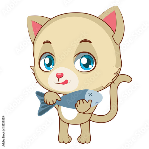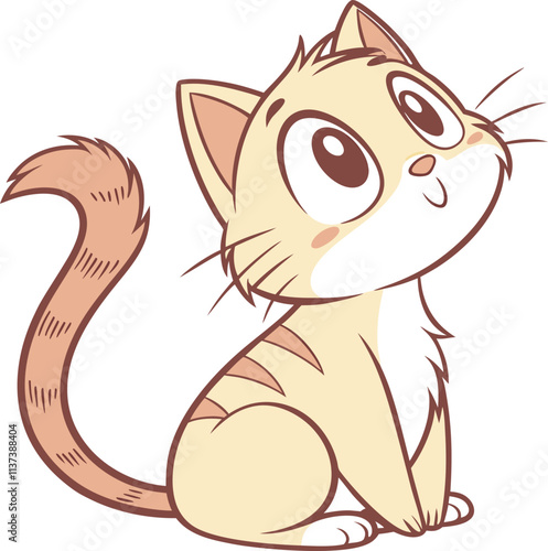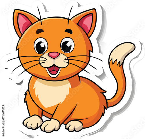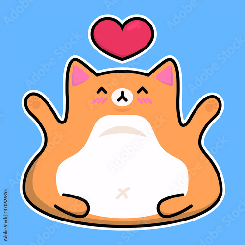 Cat in love. Cute vector animal. Funny cartoon adorable pet character icon illustration for greeting invitation card design. Kawaii valentine kitten jumping with heart in paw isolated on white