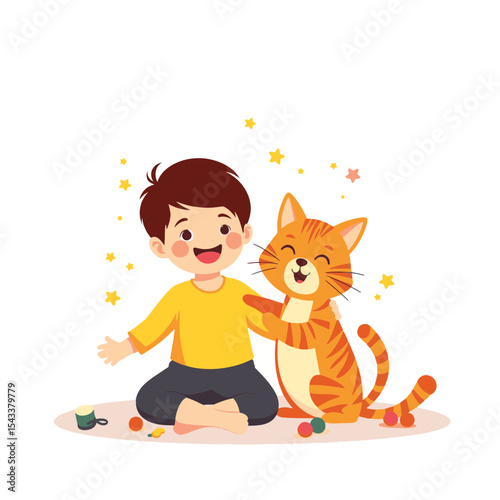 Vector illustration of woman playing with cat. Pet owner and her kitten flat style design element, icon isolated on white background.