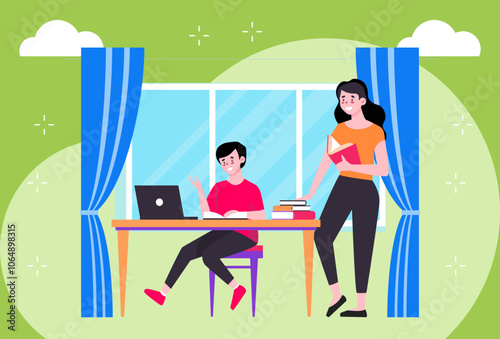 Celebrating romantic couple in restaurant. Vector illustration in flat style.