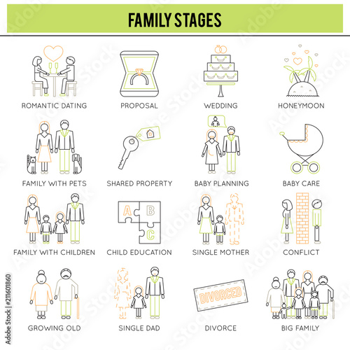 Celebration concept vector illustration. Modern thin line art flat style design in the shape of gift box with happy birthday and wedding symbols, icons for website banners and printed materials.
