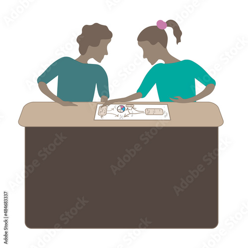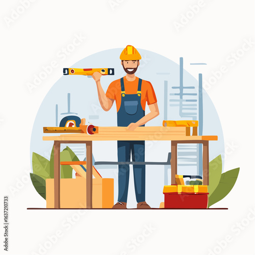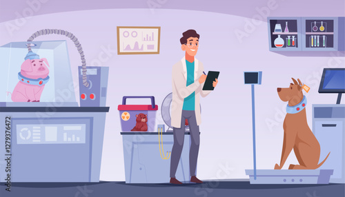 Young man in headphones playing and mixing music using DJ mixer decks, vector flat illustration isolated on white background. Happy birthday anniversary corporate party or other event celebration.