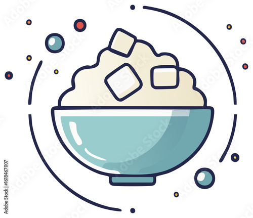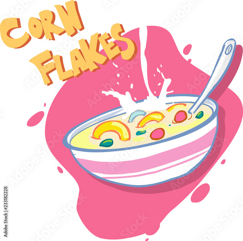 Cereal bowl with splashing milk and falling chocolate cereal balls. Vector realistic illustration. Cereal breakfast packaging design template or new natural breakfast product advertising poster.