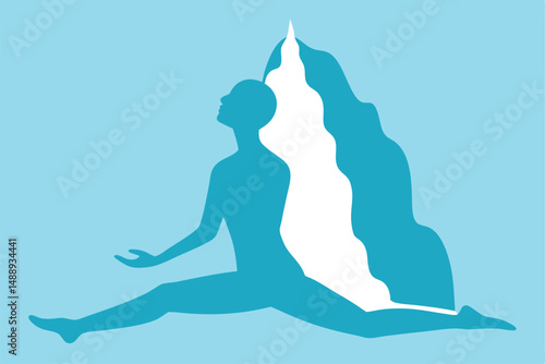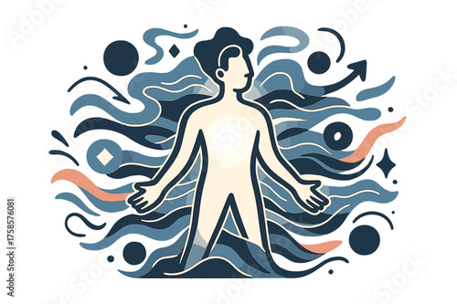 Character relax in zen vector. Male yogi exercise for peaceful of mind and balance, spiritual tranquil training. Meditation, brain calm and stress relieve poster