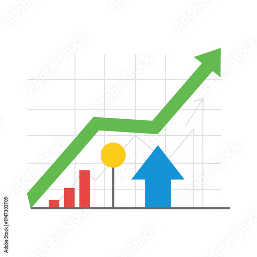 Chart graph with arrow vector icon. Growth up business stock graphic isolated on white background. Market profit financial progress concept