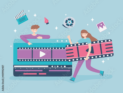 Chat message bubbles and people chatting online, drinking coffee, wine, flat vector illustration. Speech bubble, comments. Dialog. Online date. Chat messaging communication technologies.