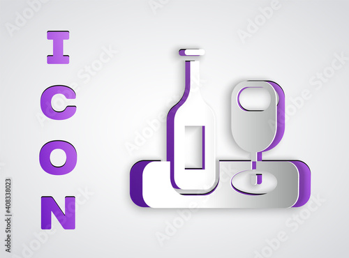 Layered paper cut style test tube and flask set, vector illustration isolated on white background. Chemical laboratory glassware, paper art modern craft style.