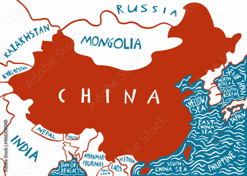 Chinese new year 2020 zodiac year of the rat, vector illustration in paper art modern craft style. Rat silhouette on china city skyline background with temple, cherry blossom, lanterns.