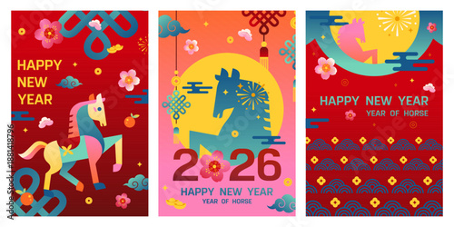 Chinese new year 2021 concept vector illustration. Family new year dinner dinner. Couple watching firework through window. Year of Metal Ox, lunar calendar. Chinese characters mean Happy New Year.