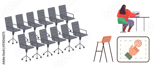 Chocolate making process, blending of chocolate ingredients or conching and pouring it into molds, vector illustration. Chocolate industry concept for web banner, website page etc.