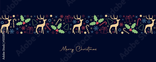 Christmas and new year decoration border. Winter holiday vector background. 2021 New Year ornament.