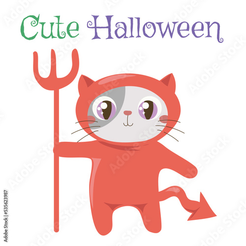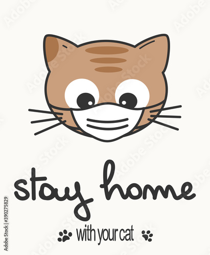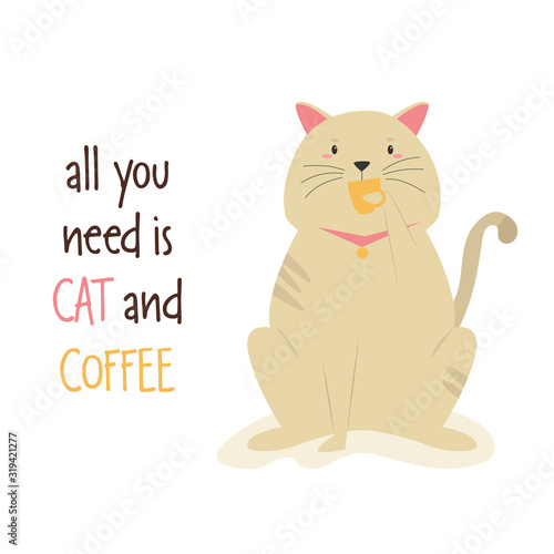 Christmas cat vector. Cute winter pet character for holiday card doodle design. Xmas kitten with holly berries mistletoe decoration isolated on white background