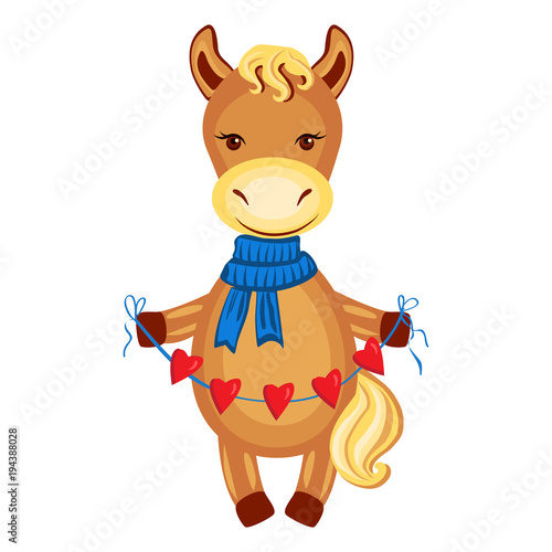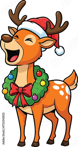 Christmas cow character with mistletoe tree wreath on head vector icon isolated on white background.