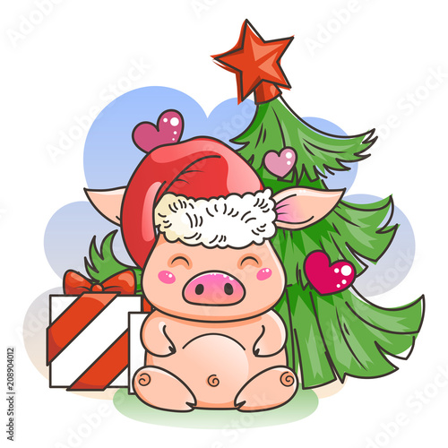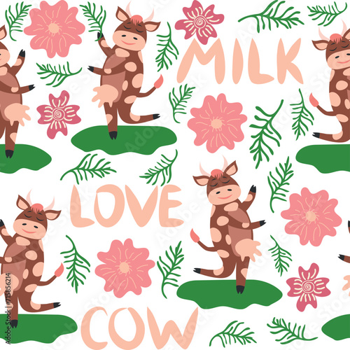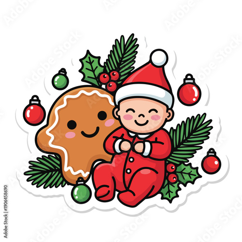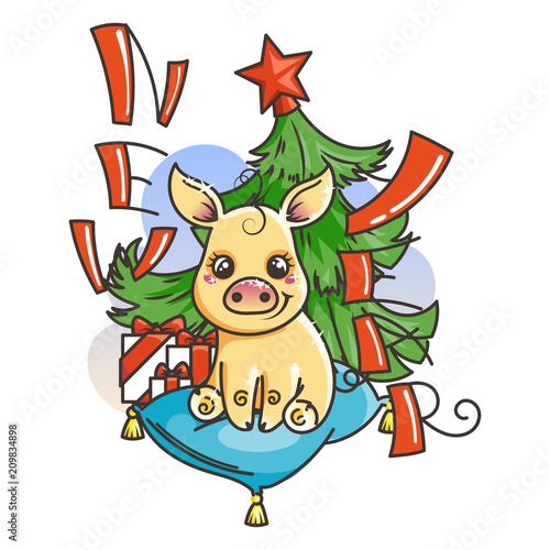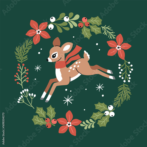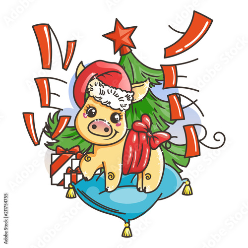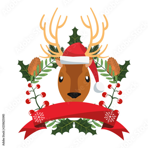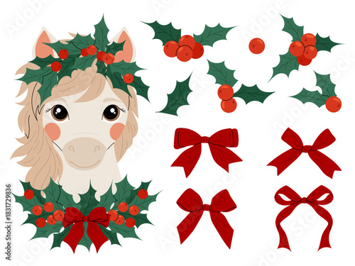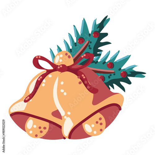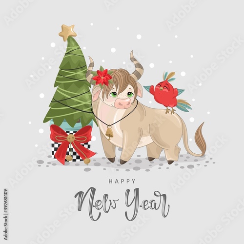 Christmas cow in wreath with bell vector icon isolated on white background.