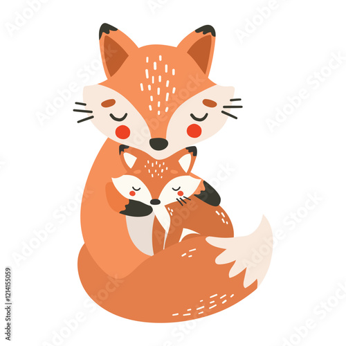 Christmas card cute animal vector icon. Red fox with holly berries mistletoe tree decoration. Happy new year and merry xmas winter holiday invitation postcard design. Isolated on white background