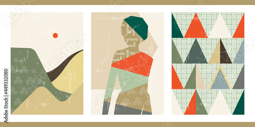 Christmas seamless pattern vector set in vintage scandinavian style. New year winter holiday background with christmas tree, santa claus and gifts.