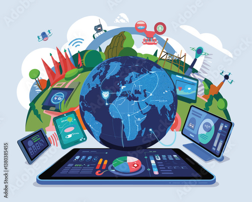 Chryptocurrency digital tech concept vector illustration. Cryptocurrency and digital money technology poster, banner design template.