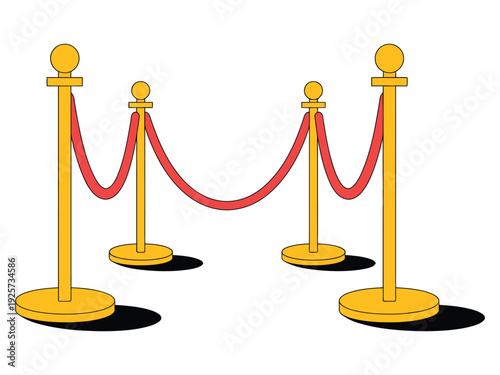 Cinema barrier with red rope realistic vector icon. Vip event gold stanchion fence isolated on white background